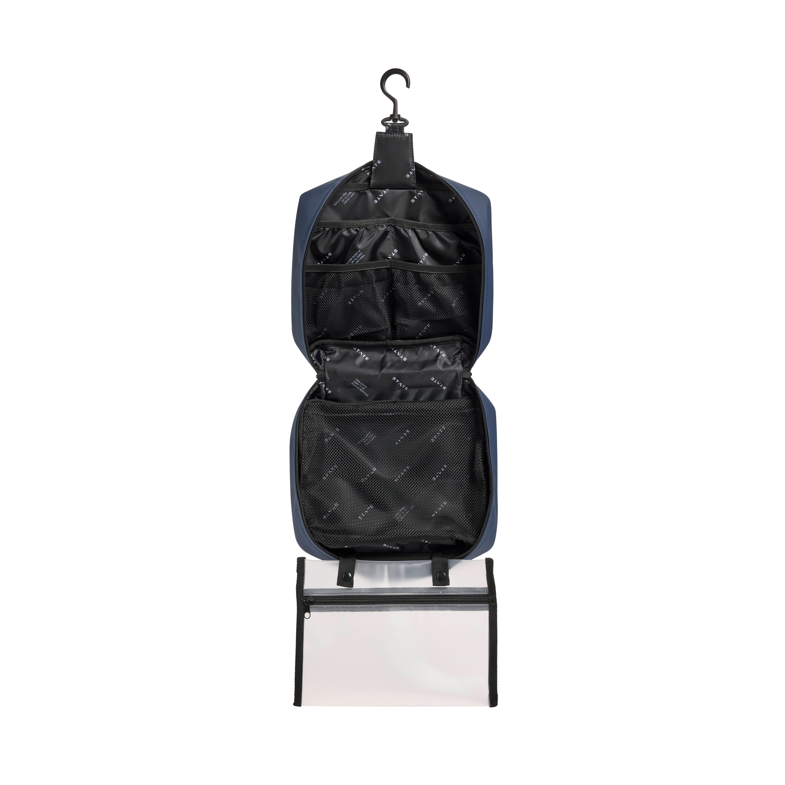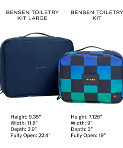 Our new, larger version of our best selling zip around hanging toiletry kit.