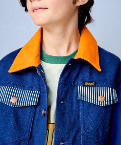 Instantly cool, always iconic, now with a colorful twist. Fresh from the Wrangler® x STATE collection, this boy’s trucker jacket gives him all the authentic details and a style he’ll be proud to wear on the journey. It’s crafted from 100% cotton denim that’s been dyed for a colorblocked look that stands out in every crowd. It features a regular fit that’s not too tight or too loose—just right and perfect for layering. It’s also finished with two chest pockets and a co-branded rubber patch at the hem.